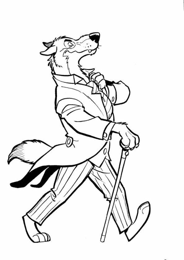 Wolf aan het wandelen met stok kleurplaat