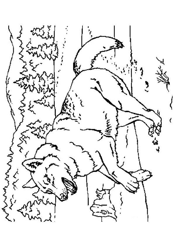 Wolf in het bos kleurplaat