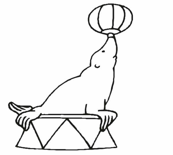 Circus zeehond met bal kleurplaat
