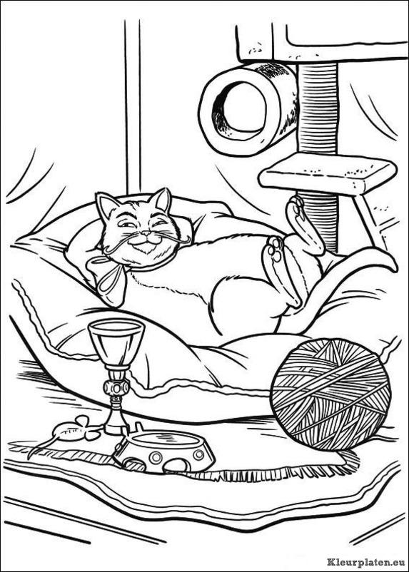 Meer de gelaarsde kat kleurplaten