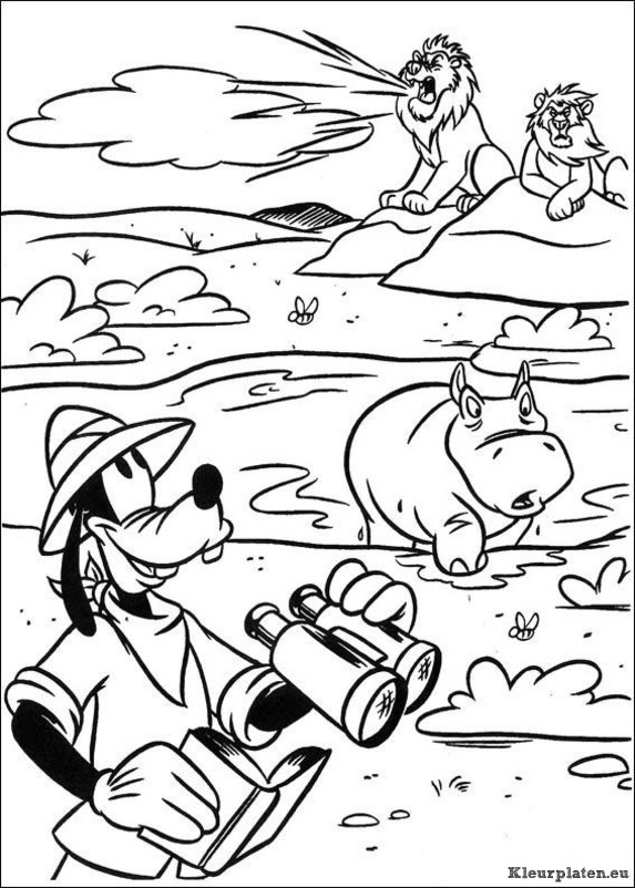 Mickey op safari kleurplaat
