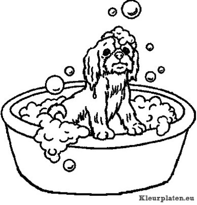 Hond in bad kleurplaat
