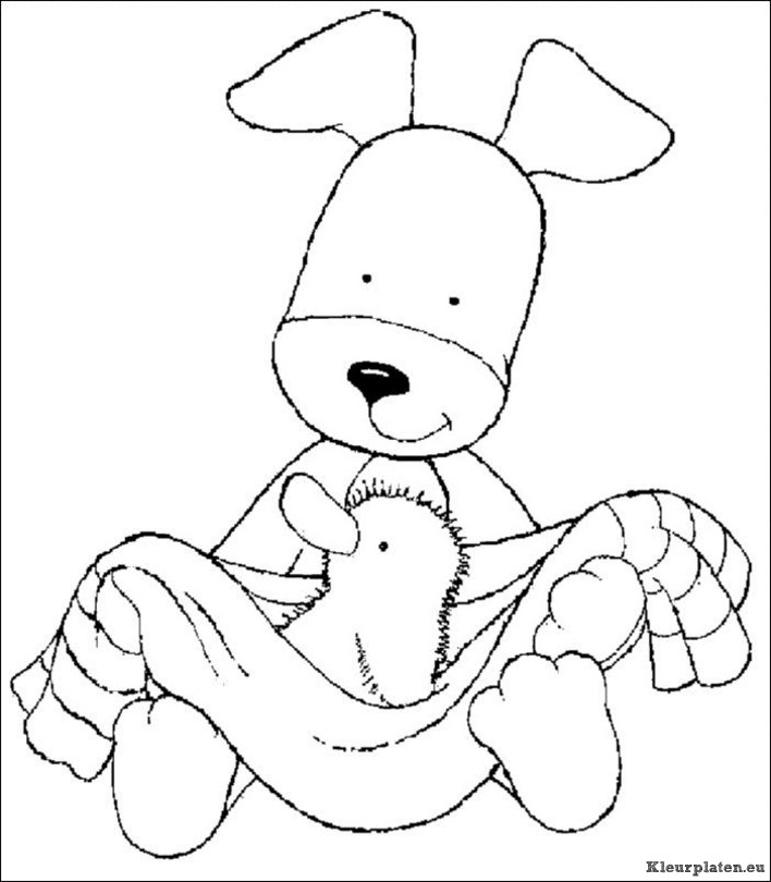 Hondje droogt kuikentje af kleurplaat