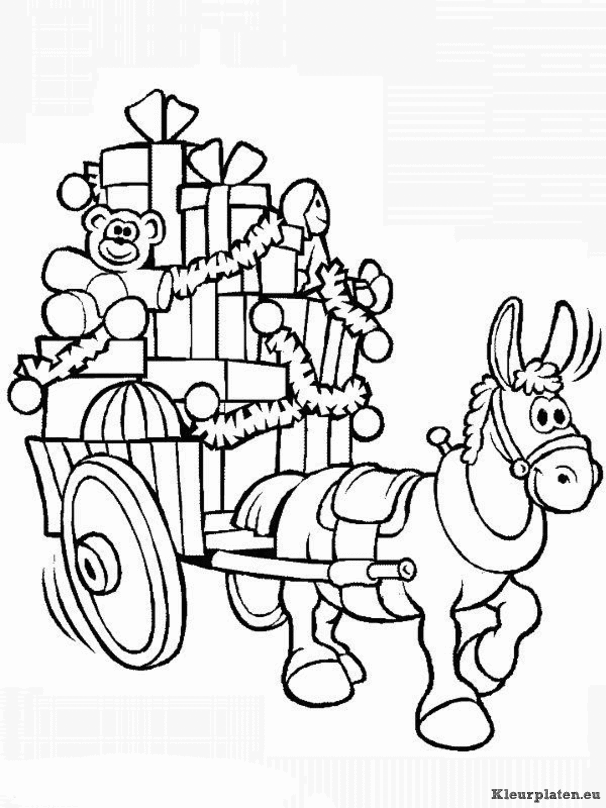 Paard met heel veel cadeaus kleurplaat
