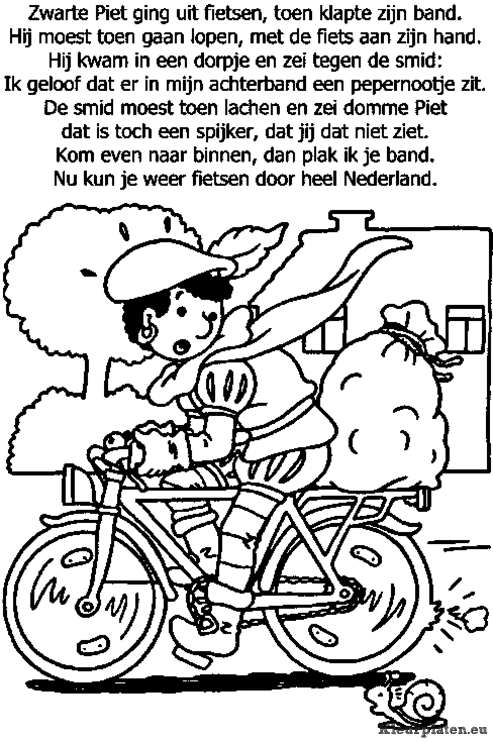 Zwarte Piet ging uit fietsen kleurplaat
