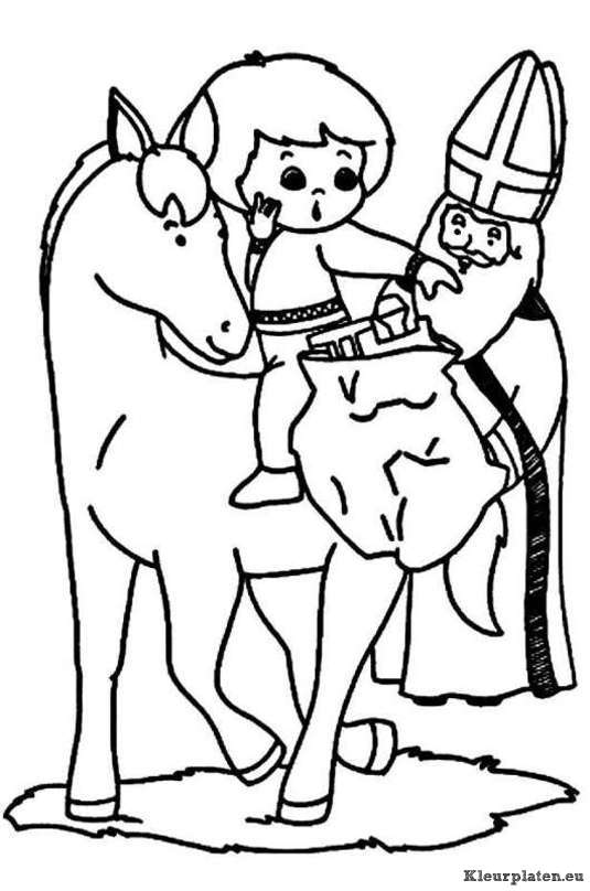 Kindje op het paard van Sinterklaas kleurplaat