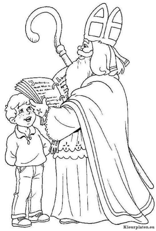 Sinterklaas leest uit zijn grote rode boek kleurplaat
