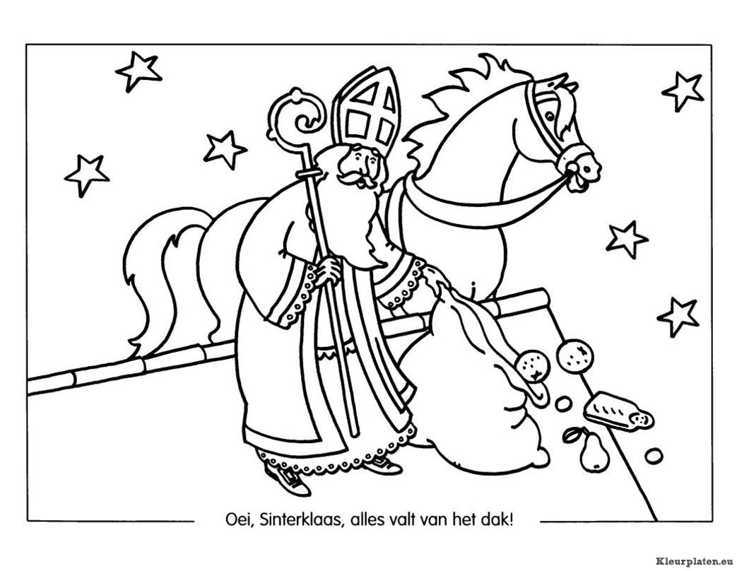 Oei Sinterklaas alles valt van het dak af kleurplaat