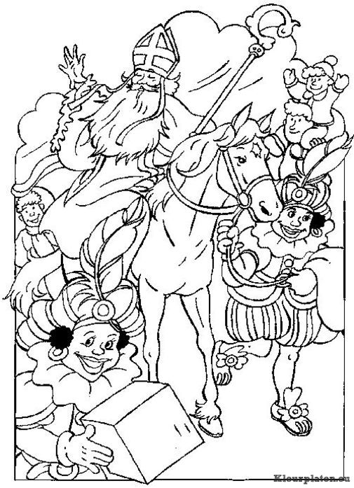 Sinterklaas op paard zwaait naar kinderen kleurplaat
