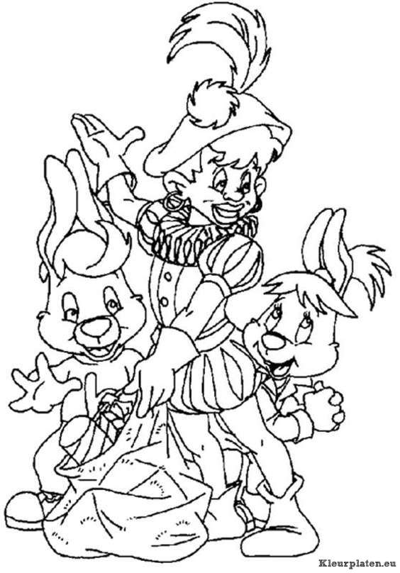 Sinterklaas met Bobo het konijn kleurplaat